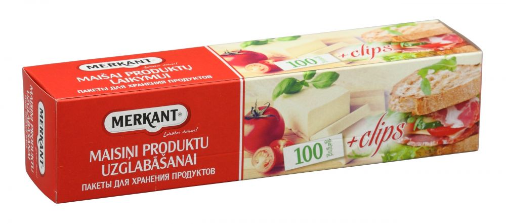 Pārtikas maisiņi. Caurspīdīgi. Noplēšami. Rullī 100 gab. Pārtiku maisiņos vēlams uzglabāt vēsā vietā (ieteicams ledusskapī). UZMANĪBU! Lietot tikai pārtikas vai citu saimniecības preču uzglabāšanai. Nosmakšanas iespējamības dēļ glabāt bērniem nepieejamā vietā.
