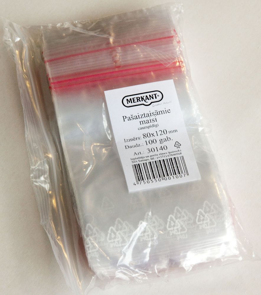 Zip Lock maisiņi 80 x 120 mm 100 gab