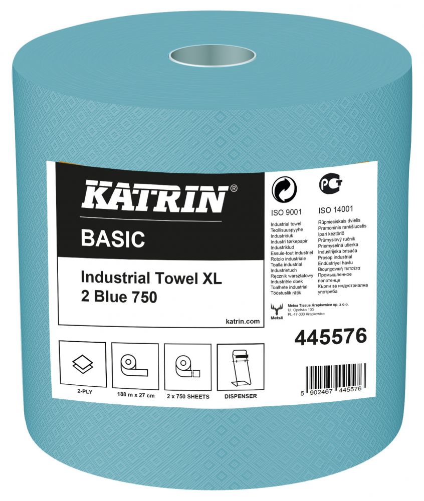 Industriālais papīrs ruļļos KATRIN Basic XL Blue, 2 slāņi, 750 loksnes, 190 metri, zils