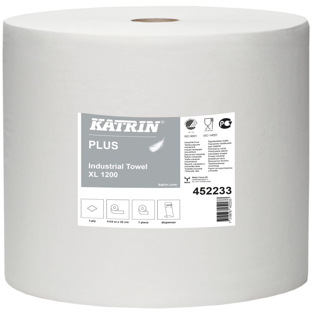 Industriālais papīrs ruļļos KATRIN Plus XL, 1 slānis, 1110 metri, balts