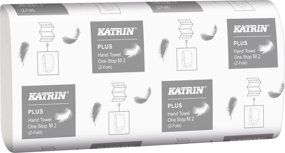 Papīra roku dvieļi loksnēs KATRIN Plus, Easy Flush, One Stop Z-locījums, 2 slāņi, 145 loksnes