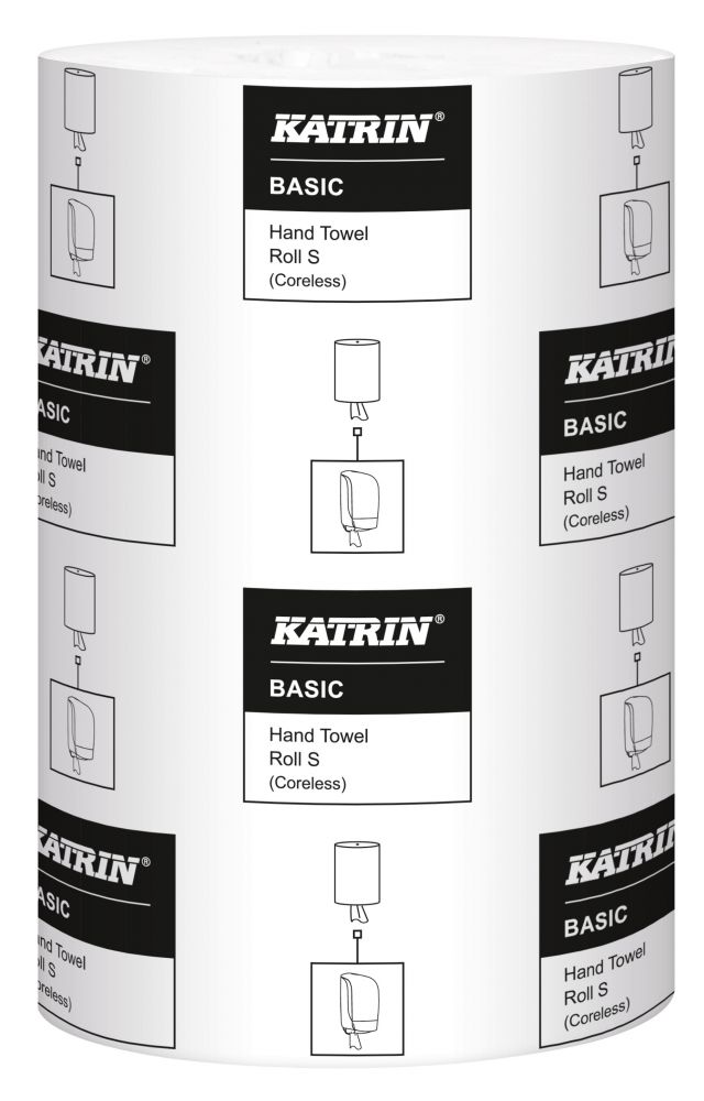 Papīra roku dvieļi ruļļos KATRIN Basic, 1 slānis, bez serdes, 100 metri, nebalināti