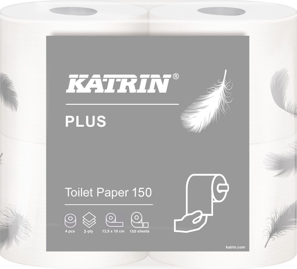 Tualetes papīrs ruļļos KATRIN Plus, 3 slāņi, 153 loksnes, 19.12 metri, balts