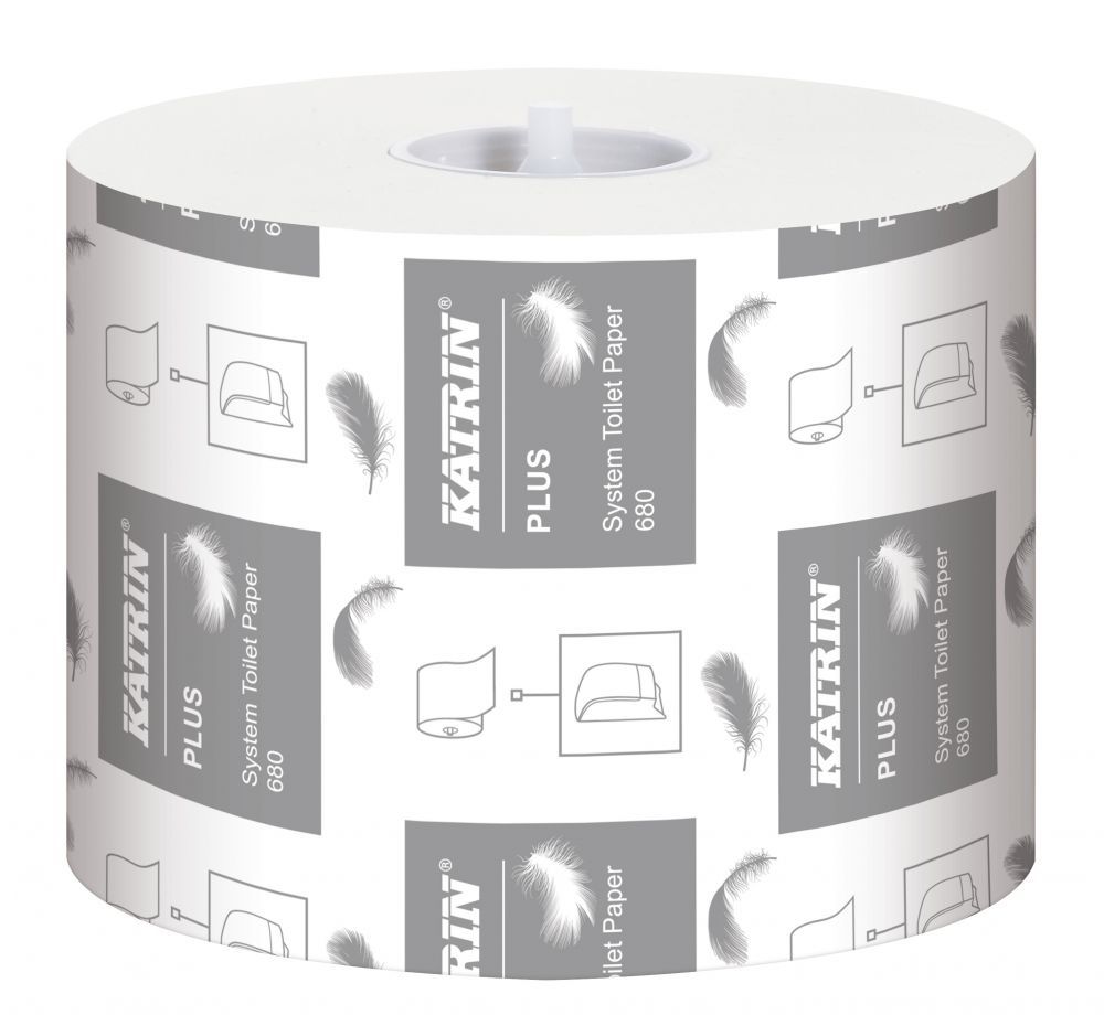Tualetes papīrs ruļļos Katrin Plus System Toilet, 2-slāņu, 680 loksnes, balts, perforēts, rullis 10cm x 85m