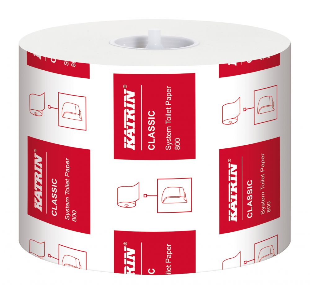 Tualetes papīrs ruļļos KATRIN Clasic System Toilet, 2sl, 800 loksnes, 100m balts, perforēts