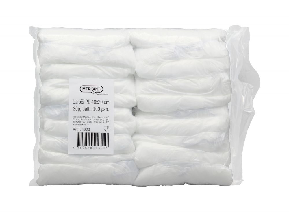 Uzroči PE 40x20 cm 20µ, balti, 100 gab.