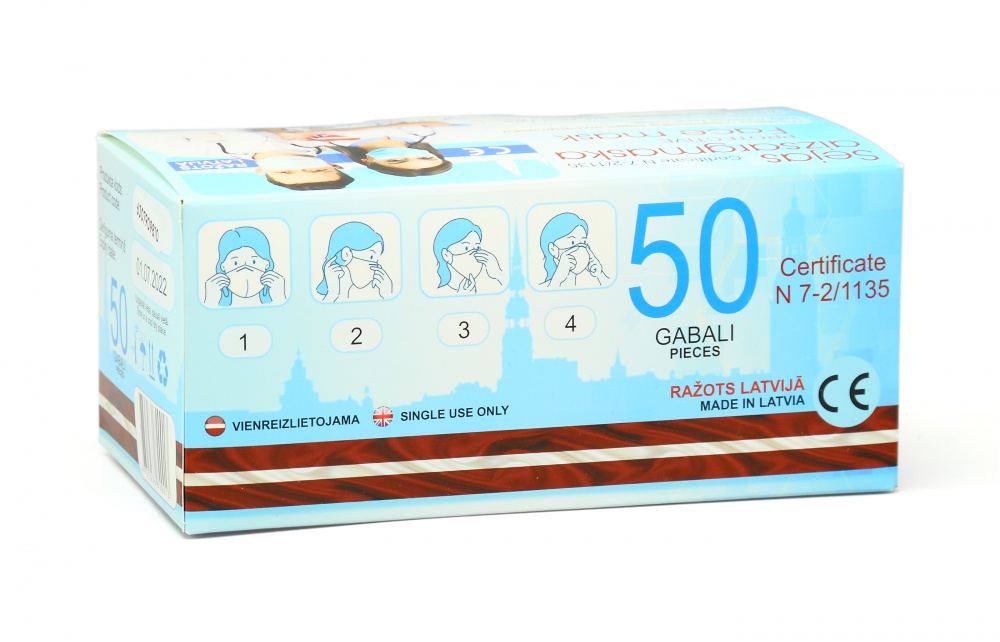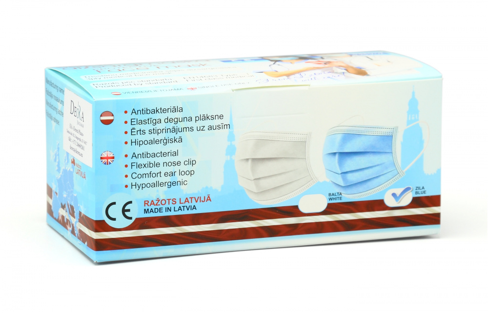 Sejas aizsargmaska, 3-slāņu, Medicīniskā, zila, 50 gab.
