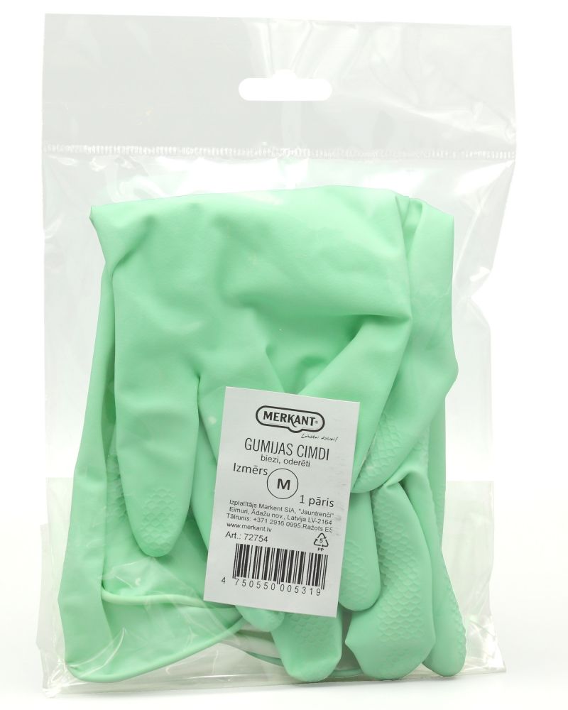 Gumijas cimdi biezie oderēti M gaiši zaļi