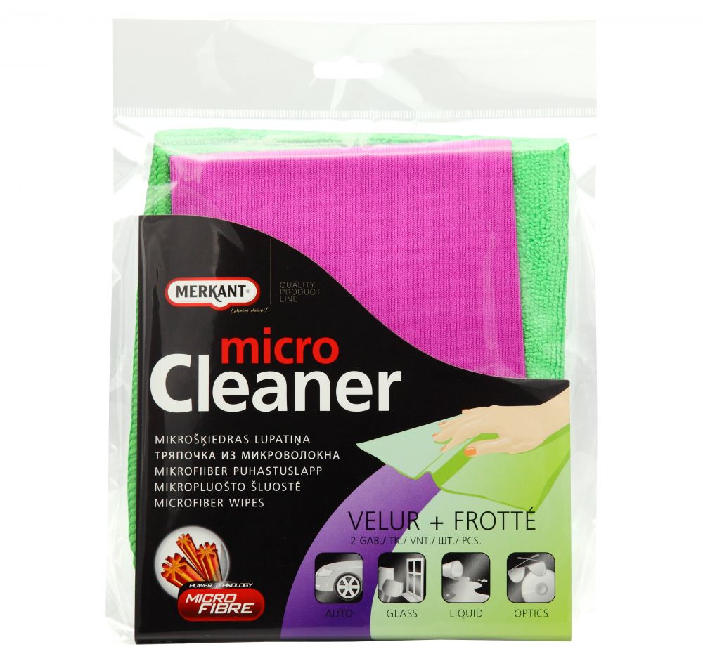 Mikrošķiedras lupata MERKANT komplekts stiklam + universālā, 2gab