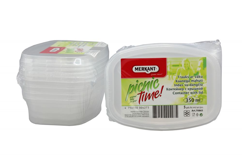 Trauks ar vāku ēdiena uzglabāšanai un saldēšanai 350ml, PP, 5 gab.