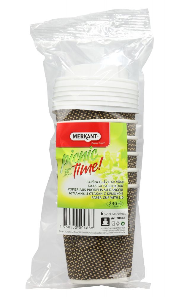 Papīra glāzes 230ml ø80mm 3-slāņu, komplekts ar vāku, 6 gab.